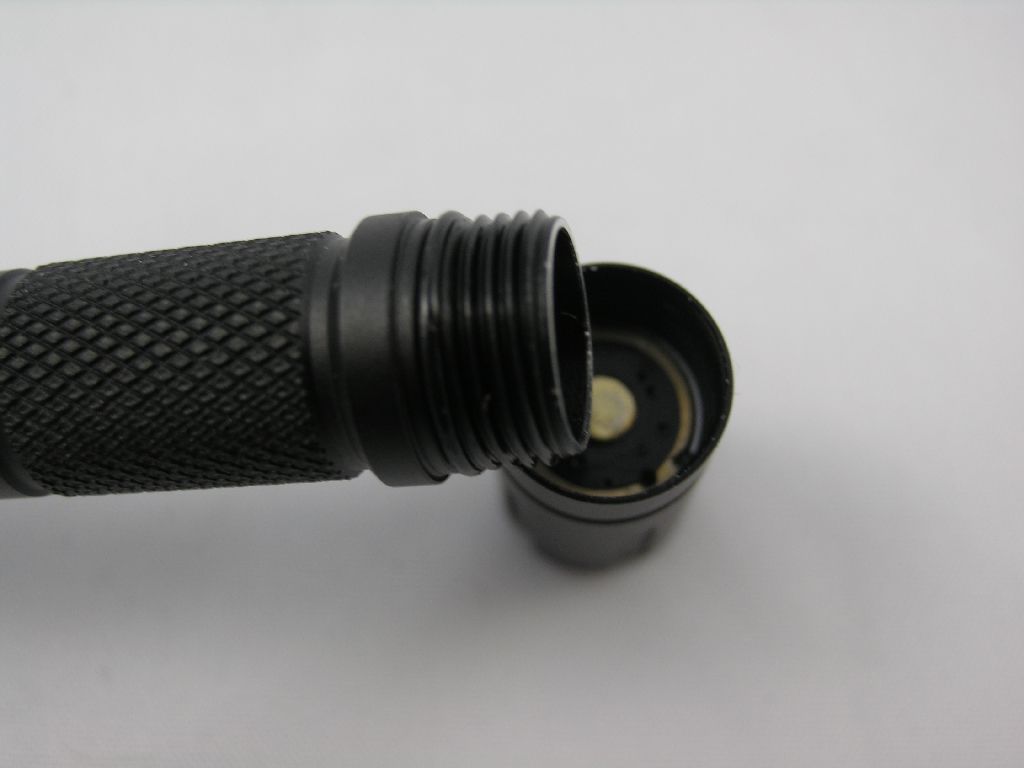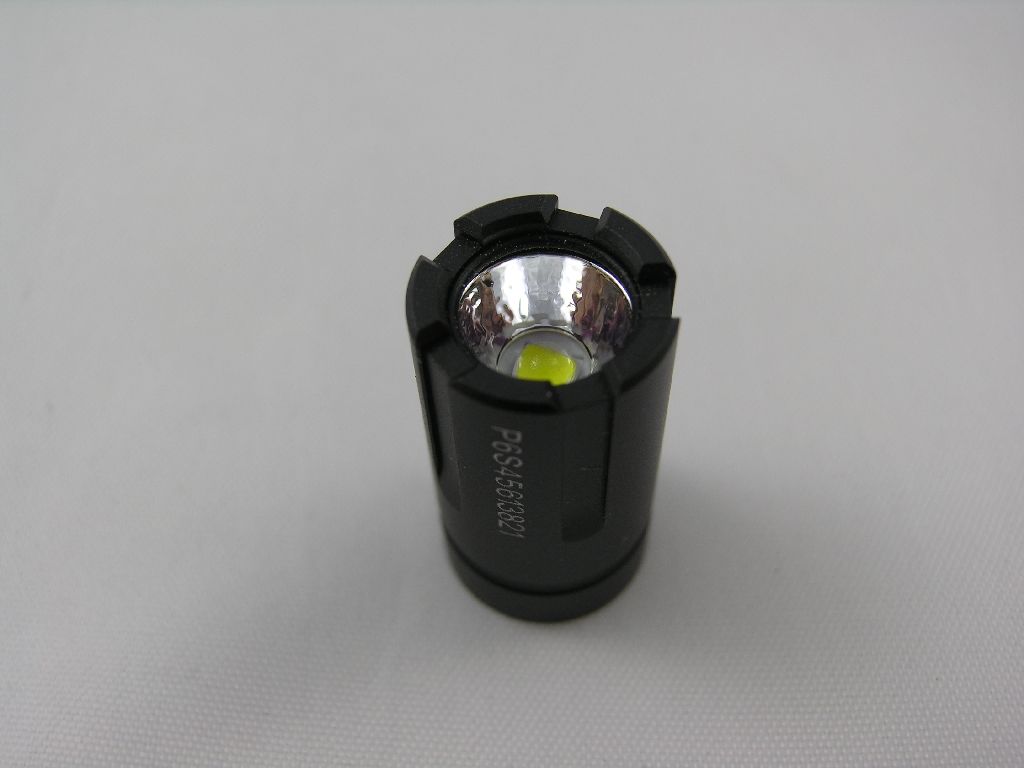 La parte anteriore della torcia ha una sorta di “strike bezel”, e contiene un led XP-L CW in un piccolo riflettore OP sotto un vetro con trattamento AR.