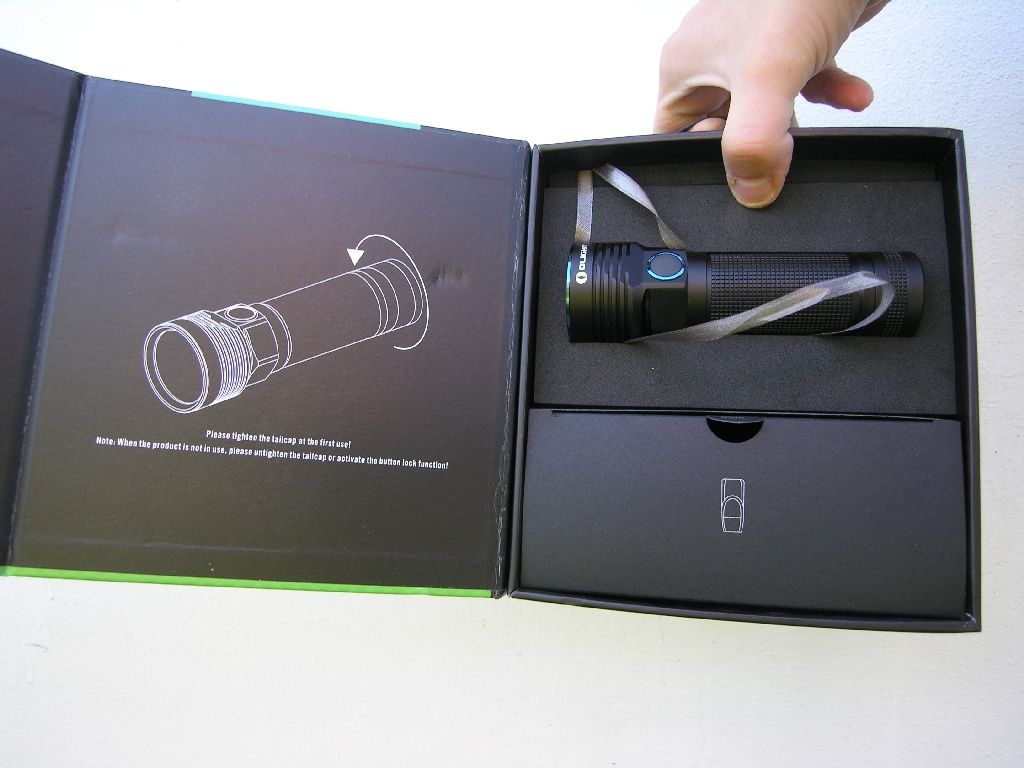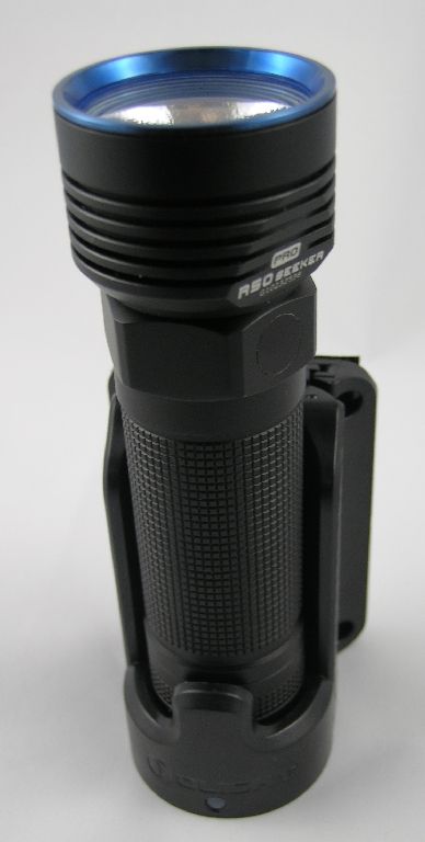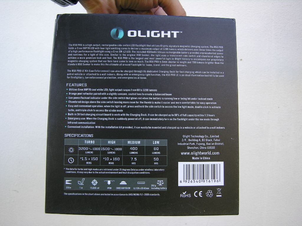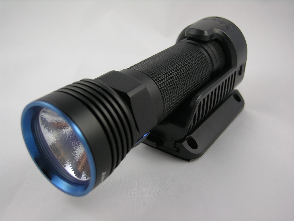 Utilizes Cree XHP70 cool white LED; light output ranges from 50 to 3200 lumens Orange peel reflector paired with a slightly concave, coated lens to create a balanced beam Low power/lockout indicator under the side switch that glows red when the battery is running low or being hit under lockout mode Chamfered design above the side switch leaving more room for the thumb to make it easier and more comfortable for easy operation Easy and convenient operation: when the light is off, press and hold the side switch to access the low light mode, double click to activate turbo, and triple click to access the strobe mode Built-in 3A fast charging circuit board to work with the R Dock. It can be charged up to 80% of full capacity within 1.5 hours Emergency use. When the R Dock is suddenly powered off, it can immediately turn on the flashlight under the low mode through infrared communication Convenient installation. With the installation kit provided, it can easily be mounted and charged up in a vehicle or attached to a wall indoors