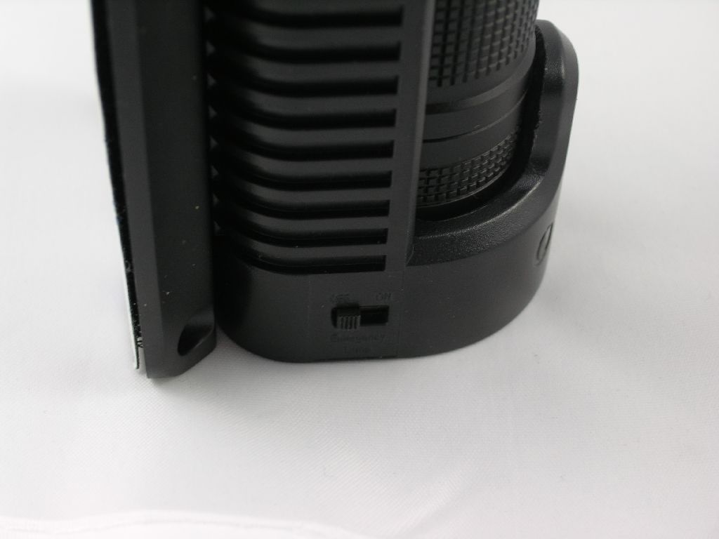Funzione lampada di emergenza: se attivato mediante l’interruttore sul portatorcia, quando lasciate la torcia nel portatorcia (e questi è attaccato alla corrente), e l’alimentazione si interrompe, la torcia si accende al livello basso. La torcia si spegne entro 10 secondi dal ritorno della corrente.