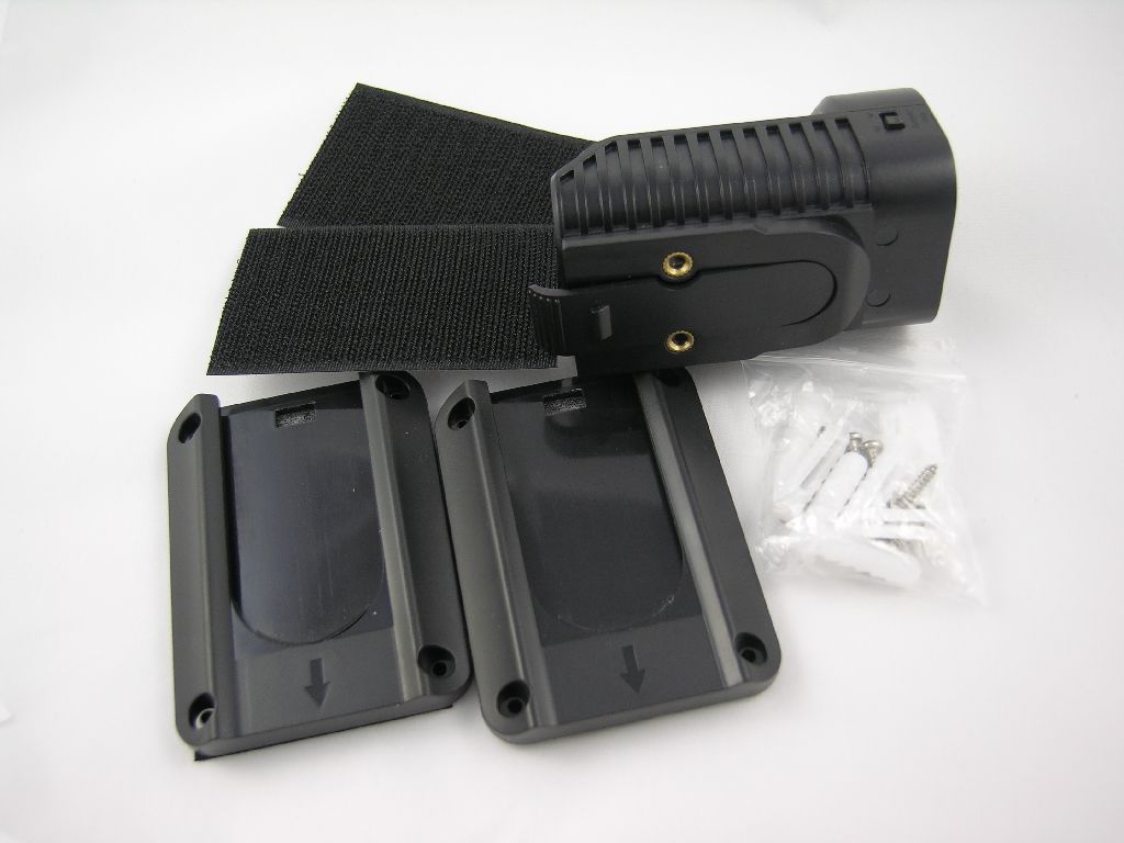 I supporti da muro possono essere attaccati al muro o a qualunque superifice usando velcro femmina-maschio, colla, o viti e fisher.