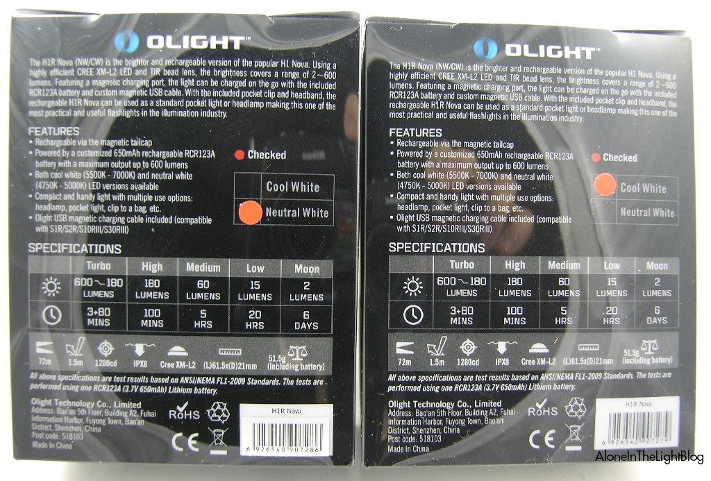 Ho letto in passato lamentele sulle tinte NW della Olight, rimproverate di essere troppo vicine al CW. Qui è chiaro che c’è una differenza rilevante tra le due tinte.