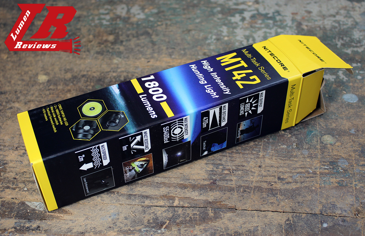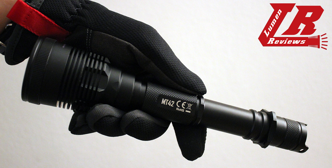 The MT42 is a 2×18650 throw flashlight, equipped with a CREE XHP35 HD Emitter, and has a mechanical tail switch plus an electronic one at the head.