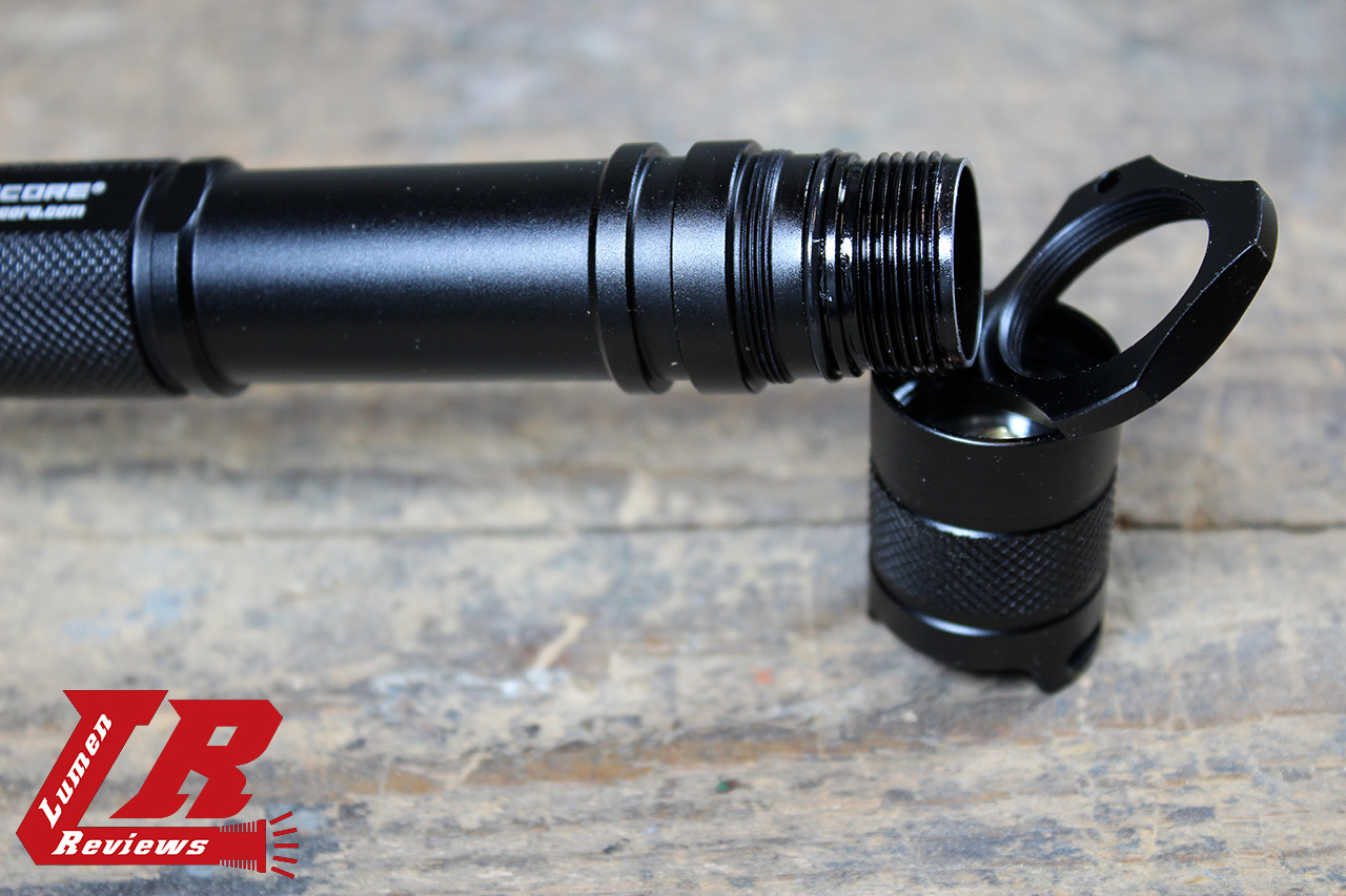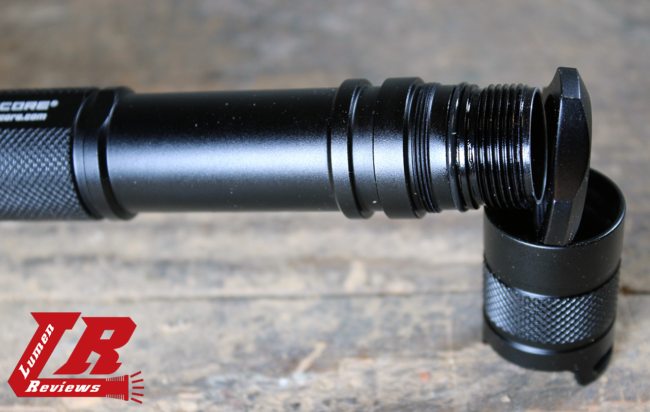 Under the tailcap threads there are the threads for the cigar grip ring. Personally, I don’t use the cigar grip ring on flashlights of this size as it is, but I always leave it on for extra grip and as an anti-rolling device.