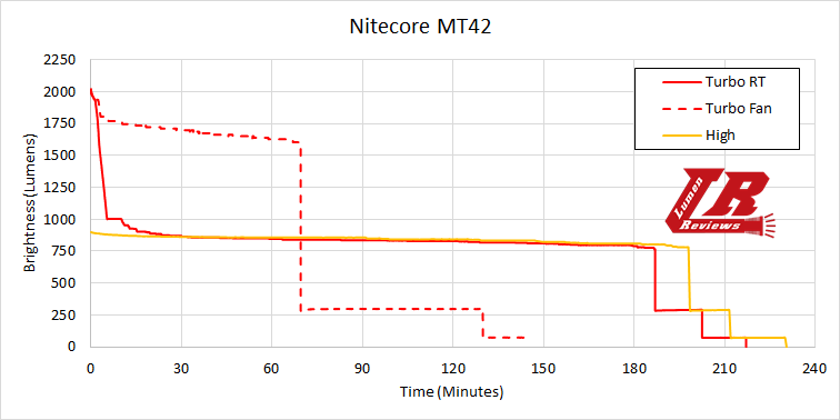 In synthesis, If you need a 2×18650 light, without any timed stepdown, with good output, decent throw and a simple UI, I think the MT42 will suit your needs.